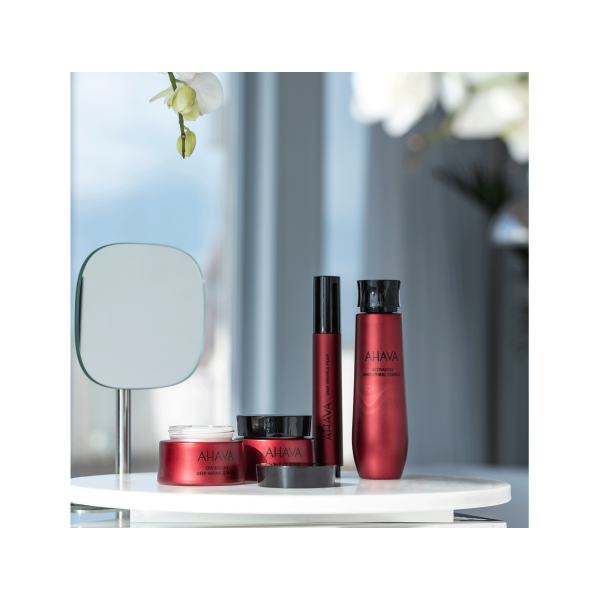 La máscara a base de gel reduce las arrugas profundas durante la noche y mejora las capacidades naturales de reparación y recuperación de la piel. La máscara, enriquecida con el exclusivo y patentado ingrediente complejo y activo Apple of Sodom ™, nutre e hidrata la piel durante el sueño para una piel descansada, suave, de aspecto joven y un comienzo óptimo del día.