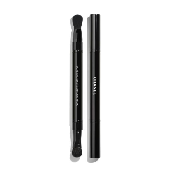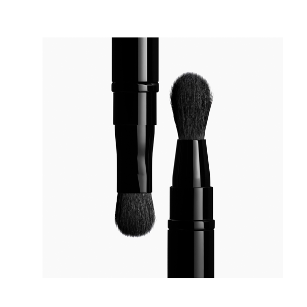 LES PINCEAUX DE CHANEL permiten utilizar con facilidad las técnicas de los Makeup Artists. Su diseño, depurado y funcional, la convierten en una colección de accesorios nómadas y deseados. Están compuestos por una selección de pelo sintético, tan suave como resistente, y protegidos por una funda negra, para resistir al paso del tiempo con elegancia.El PINCEAU DUO PAUPIÈRES RÉTRACTABLE, con sus dos extremos, es la herramienta ideal para aplicar y difuminar las sombras de ojos en crema y polvo. Ofrece un gesto seguro y un resultado profesional con total sencillez. Una selección de pelo suave y sedoso para una aplicación de las sombras fácil y sensorial, y un difuminado perfecto. El extremo "shader"*, con una forma alargada, permite tomar y depositar las sombras de ojos en crema y polvo con un gesto sencillo y preciso. El extremo "blender"**, con una forma generosa y un pelo suave, permite difuminar y mezclar diferentes matices de sombras entre sí, y suavizar los contornos para perfeccionar el resultado de maquillaje. Uso nómada: las fundas permiten proteger los dos extremos retráctiles para llevar el pincel con facilidad en el bolso.* shader: para sombras** blender: para difuminar