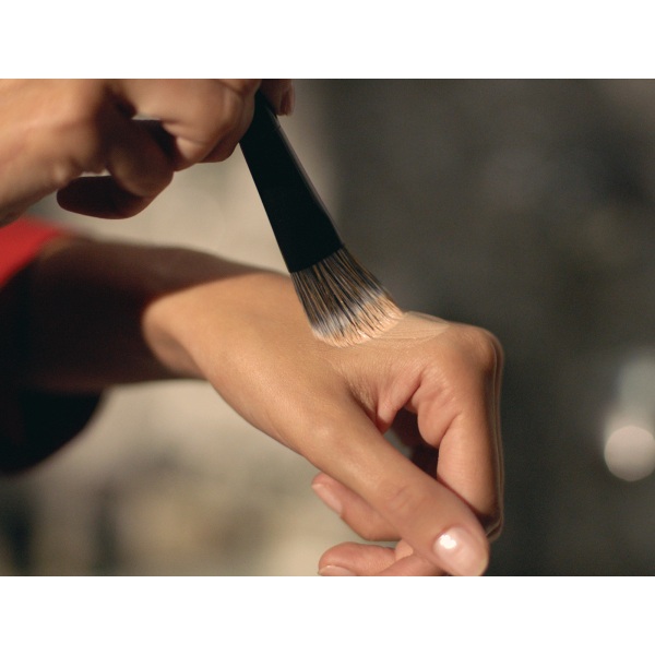 Aplicar un poco de base de maquillaje fluido en la palma de la mano, luego coja una peque�a cantidad de producto utilizando la brocha y aplique el producto a traves de ligeros toques. Extienda la base de maquillaje desde el centro del rostro realizando movimientos de atras hacia delante. Para tapar las imperfecciones, deposite una peque�a cantidad de producto en el area deseada y suavicela con la ayuda de la brocha. Limpie regular y delicadamente con jabon o shampoo. Aclare y escurra la brocha sin retorcerla. TRUCO MAKE UP ARTIST: Apliquelo en las zonas curvadas del rostro y despues difumine con la ayuda de la parte plana realizando movimientos circulares.
