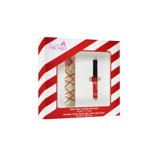 El set incluye: -Pink Sugar red velvet EDT Spray 50ml- Lip gloss 8,5ml