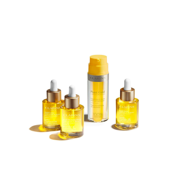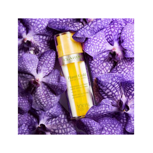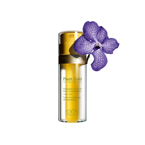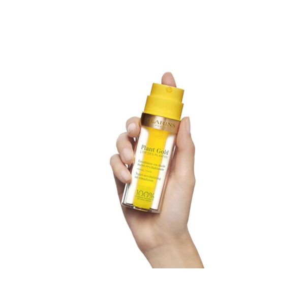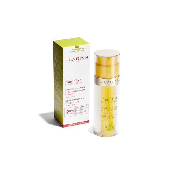Inspirada en las técnicas de las esteticistas Clarins en el instituto de belleza, Clarins innova con un doble frasco específico para Plant Gold - L’Or des Plantes. Una doble fórmula inédita: la primera emulsión en aceite de Clarins que combina el mítico Aceite de Orquídea Azul Clarins y una emulsión fundente 100% de origen natural, que se fusionan al momento de la aplicación formando una textura ligera y no grasa. Fluida y fundente, esta fórmula mágica de aroma natural aporta en un solo gesto Nutrición, Vitalidad y LuminosidadTipo de PielPiel normal, Piel seca, Piel mixta, Piel grasa, Piel sensible, Piel maduraTratamientoHidratación, Nutrición, Luminosidad