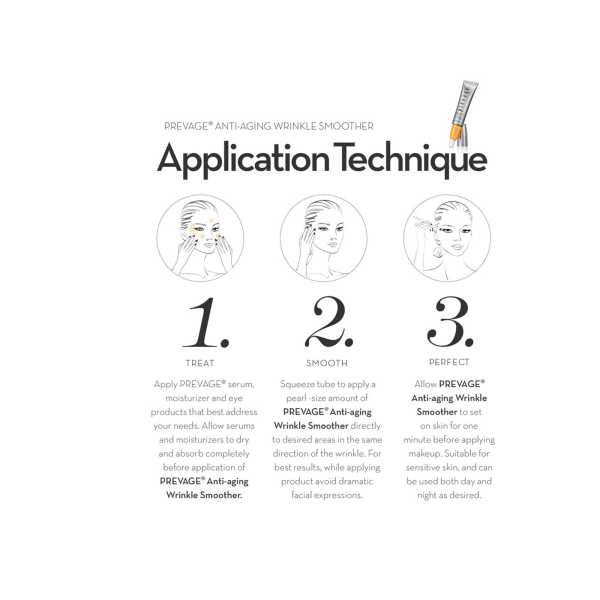 Retire la tapa del envase y gire el aplicador. Presione suavemente hasta que consiga una pequeña cantidad de produto. Utilizando el aplicador, extienda la fórmula sobre las líneas de expresión y las arrugas. Para potenciar los resultados utilícese después de su crema PREVAGE® y antes de maquillarse. Apto para pieles sensibles.