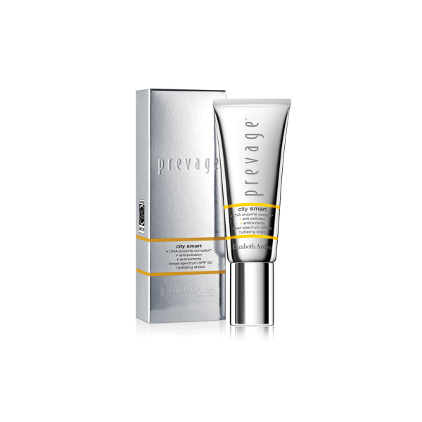 Todos los días, en ciudades de todo el mundo, el medio ambiente envejece visiblemente tu piel; de hecho, el 80% de todos los signos de envejecimiento cutáneo se deben a agresores ambientales como los rayos UV, la contaminación y el humo. Reconociendo la epidemia mundial de contaminación, Elizabeth Arden presenta el primer protector de piel invisible de su tipo que combina la protección contra la contaminación y los rayos UV con nuestro DNA Enzyme Complex para fortalecer la piel. Protección transparente, hidratante e invisible para ayudar a que la piel luzca más joven por más tiempo. Nuevo Protector hidratante PREVAGE City Smart Broad Spectrum SPF 50 + DNA Enzyme Complex + Antipolución + Antioxidantes Tipo de piel Normal, Seca, Grasa, Mixta, Sensible, Madura