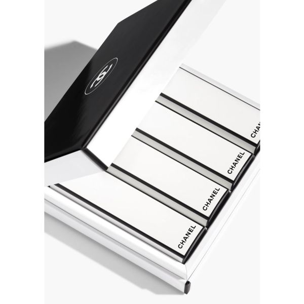 En edición limitada, el set ROUGE ALLURE VELVET NUIT BLANCHE. Un estuche blanco con ribetes negros, con los colores del nuevo estuche, que revela 4 tonos inéditos cuyos nombres evocan las horas de la noche: 00:00, 01:00, 02:00 y 06:00. La barra de labios aterciopelada luminosa: la textura segunda piel ultraconfortable sublima los labios con un concentrado de pigmentos puros para un acabado luminoso, intenso y de larga duración. Gracias al derivado de aceite de jojoba y la manteca de karité, la fórmula es suave y proporciona una sensación inmediata de hidratación y flexibilidad. Cómo Aplicar Aplicar directamente sobre los labios, desde el centro hacia el exterior. Para un contorno de labios ultrapreciso, antes de aplicar ROUGE ALLURE VELVET delinee los labios con un trazo de LE CRAYON LÈVRES del mismo tono. A continuación, aplique la barra de labios con ayuda del pincel del lápiz.