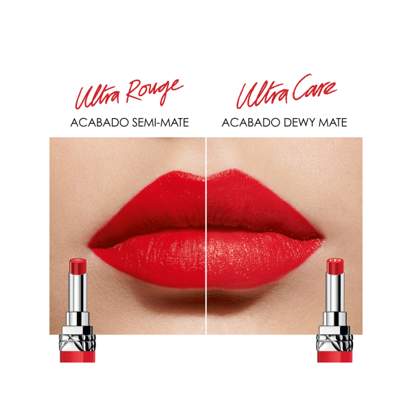 Rouge Dior Ultra Rouge es la primera barra de labios de larga duración extrema con el confort de una tinta de labios**: una auténtica revolución en la historia de las barras de labios.Ultra Rouge ofrece la ligereza de una fórmula ultraconfortable y todo el color de una barra de labios altamente pigmentada. Los colores parecen más saturados, con un acabado semimate luminoso y una duración de 12 horas*, para una sensorialidad y una hidratación inéditas. Siempre a la vanguardia, Dior ha desafiado a sus equipos de investigación para reconciliar el deseo de colores radiantes y la necesidad de un confort de larga duración.Fruto de extensas investigaciones y de estudios científicos exhaustivos, Rouge Dior Ultra Rouge es la primera** barra de labios compuesta por un polímero que, asociado a un aceite vegetal, ofrece tanto un confort como una hidratación absolutos, aportando además 12 horas*** de duración sin sensación de tirantez ni de sequedad.* Test instrumental realizado en 20 mujeres.** En Dior.*** Excepto el tono 000.BeneficiosRouge Dior Ultra Rouge ofrece una pigmentación intensa y una duración de hasta 12 horas*. Los colores se revelan ultrasaturados gracias a la alta concentración en pigmentos. Llevar Ultra Rouge es una sensación inédita de ligereza en los labios, combinada con el confort de su fórmula.* Test instrumental realizado en 20 mujeres. Excepto el tono 000.TonosRouge Dior Ultra Rouge está disponible en 10 tonos couture ultrasaturados para un acabado semimate luminoso.