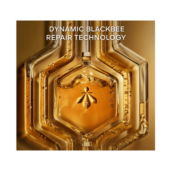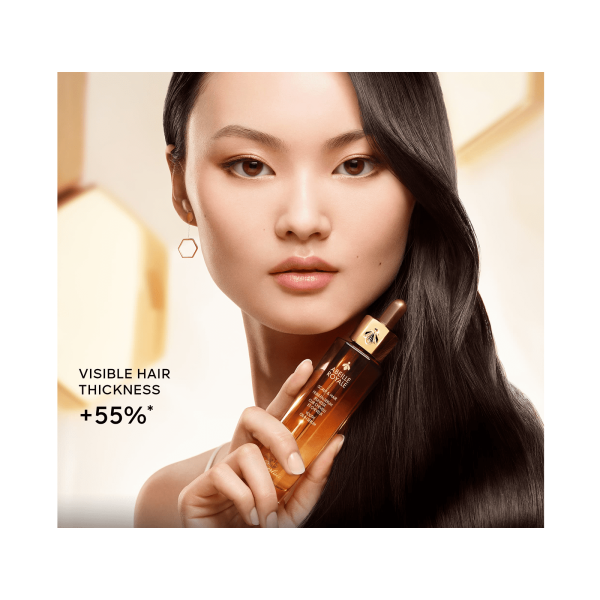 La ciencia de las mieles reparadoras Abeille Royale revela su poder en la belleza y la juventud del cabello. El Aceite en Sérum de Juventud, gracias a su tecnología Dynamic BlackBee Repair, enriquecida con miel de Abeja Negra de la isla de Ouessant, triplica la vitalidad del cuero cabelludo y multiplica por 5 la resistencia de la fibra capilar para aumentar visiblemente en un 55% la densidad del cabello. Su textura no grasa, con un 97 % de ingredientes derivados de la naturaleza, puede aplicarse cada día sobre el cabello seco o húmedo.Doble Acción Sobre El Cabello y El Cuero CabelludoTECNOLOGÍA DYNAMIC BLACKBEE REPAIRLa tecnología Dynamic BlackBee Repair reúne algunos de los productos más efectivos de la abeja identificados por la Investigación Guerlain. Conjuntamente, favorecen la dinamización de las uniones entre el cuero cabelludo y el cabello* para contribuir a la fuerza y la juventud de este último. * Test in vitro y ex vivo realizados en los ingredientes.COMPLEJO CON D-PANTENOLLa Investigación Guerlain ha creado un complejo con D-pantenol, activo reconocido por su capacidad fortalecedora del cabello, para actuar inmediatamente y a largo plazo sobre la calidad de la fibra. Está presente en el Aceite en Sérum, que estimula la fibra y protege visiblemente su color natural.Las Mieles y Jaleas Más PoderosasLa Investigación científica Guerlain combina con la mítica miel de Abeja Negra de Ouessant y una jalea real francesa exclusiva tres otras mieles procedentes de islas protegidas que, al participar en las cadenas de suministro exclusivas de Guerlain, garantizan su calidad y trazabilidad. Las mieles se fusionan magistralmente para ejercer una función específica rejuvenecedora de la piel.TratamientoBrillo, Volumen, Espesor, Reparación Tipo de CabelloTodo tipo de cabello