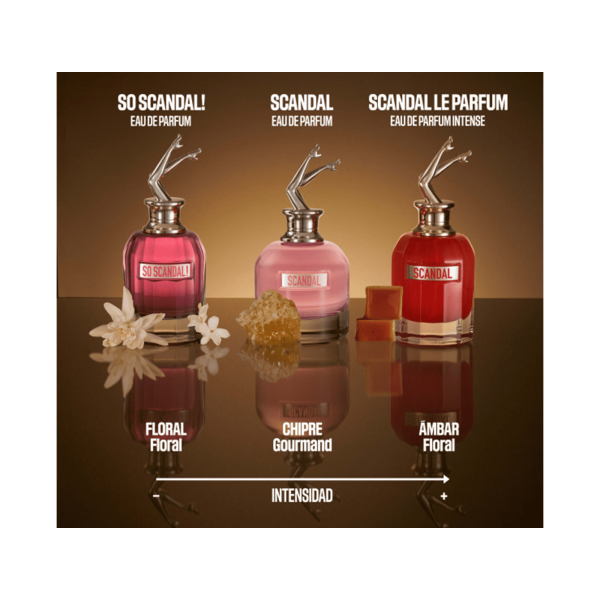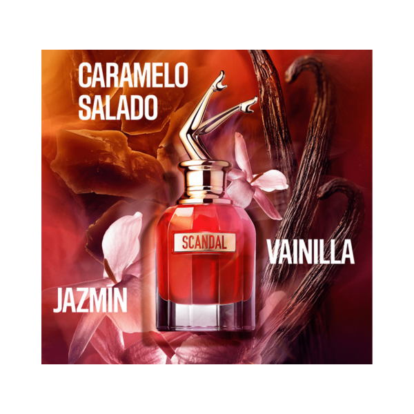 ¿Y si hiciéramos volar en pedazos los buenos modales? ¡De una buena vez por todas! Jean Paul Gaultier ha escuchado a todas las mujeres que aman los escándalos… ¡¡Sorpresa!! SCANDAL Le Parfum hace su entrada en la capital, anunciándose de manera estrepitosa. La Maison lo prevé: la emoción será fuerte y la diversión será total. Dicen que será un espectáculo de los sentidos, que hará danzar las lámparas de techo y temblar las paredes... Porque no tenemos nunca un escándalo demasiado cerca, ¡este Eau de Parfum Intense se permite todo! Absolutamente todo. Un rojo sensual que adora provocar a la alta sociedad. Unas piernas espectaculares que dan que hablar todo el tiempo. Un jazmín sublime sobre un deseo de caramelo salado, vestido de vainilla negra. El público se enloquece. Se revoluciona. Con una sola vaporización. ¡Qué perfume! ¡Y qué estela! Del gran Gaultier.Familia de fraganciasFlorales, Citricos y frutalesNotasVainilla, jazmin, caramelo salado