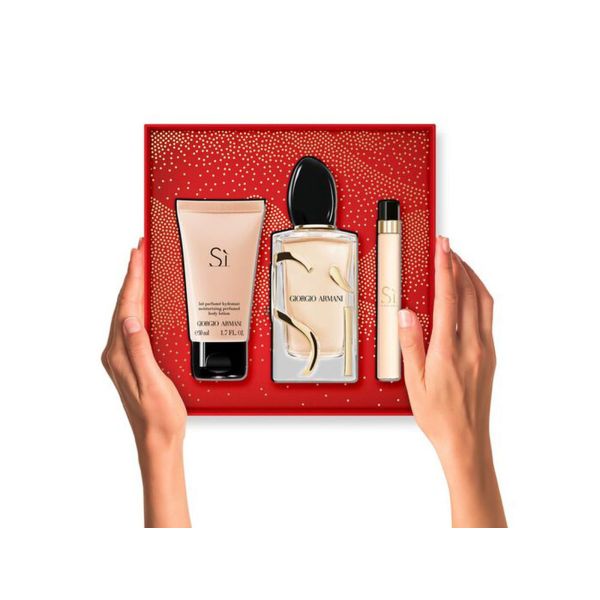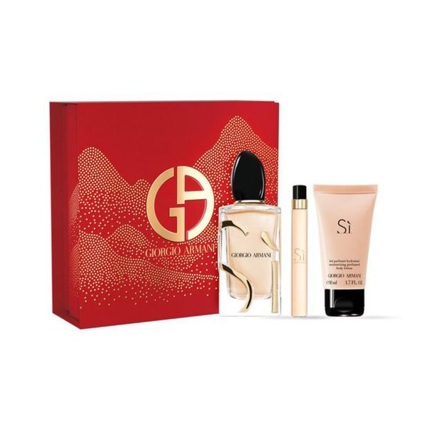 Para estas fiestas, sigue las perlas mágicas y descubre regalos de belleza únicos de Armani. Abre tu caja de regalo de Armani y enamórate de sus iconos inimitables. El set de regalo de Armani es un regalo de alta costura, creado con gran atención al detalle, papel de primera calidad y decorado con estampado dorado en caliente. Con una visión de lujo consciente, los sets están completamente libres de plástico y diseñados para durar. La hermosa caja roja decorada está diseñada para ser guardada y reutilizada. Este set se compone de:- SÌ Eau de Parfum 100 ml- SÌ Eau de Parfum 10 ml- SÌ Eau de Parfum 50 ml loción corporal