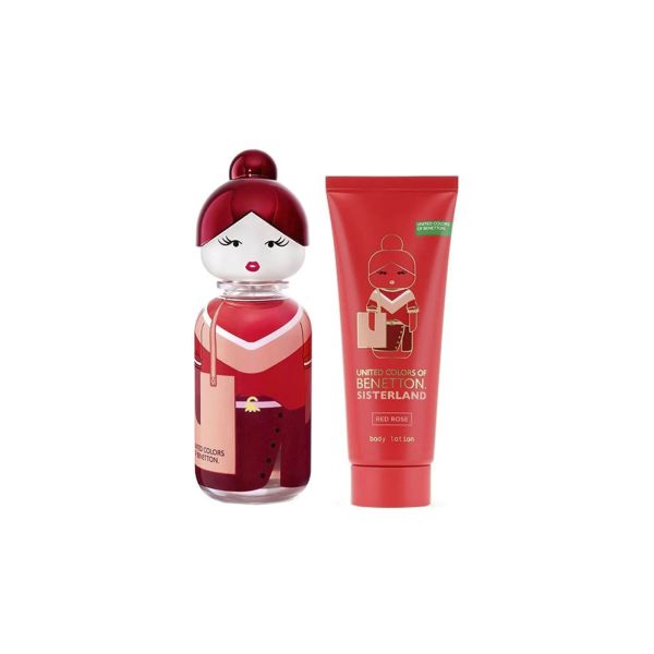 BNT Sisterland Red Rose EDT 80ml + Body Lotion 75ml de Benetton es un set que combina una fragancia fresca y femenina con una loción corporal hidratante, diseñado para una experiencia sensorial completa. Esta fragancia pertenece a la familia olfativa floral fresca, perfecta para mujeres que buscan un aroma vibrante y elegante. RED ROSE es la hermana enérgica, fuerte y apasionada. Su fuerte personalidad es una mezcla de intensidad y sensualidad, capaz de inspirar a todo un grupo. Una fragancia femenina y delicada de inspiración oriental. La fragancia abre con notas brillantes y cítricas, complementadas con un corazón de rosa roja intensa y un fondo de almizcle que aporta suavidad y duración. Notas olfativas:- Salida: Cítricos, bergamota, limón - Corazón: Rosa roja, jazmín, peonía- Fondo: Almizcle blanco, cedroModo de Uso:Aplicar el Eau de Toilette en los puntos de pulso como cuello y muñecas para una mayor duración. Complementar con la loción corporal después del baño para hidratar la piel y prolongar la fragancia. BNT Sisterland Red Rose es la opción ideal para mujeres que buscan elegancia, frescura y un aroma que acompaña sus momentos más especiales. Set incluye:- Eau de Toilette 80ml- Crema Corporal 75ml