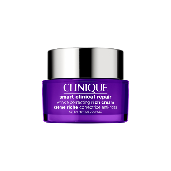 BeneficiosFortalece, repara visiblemente líneas y arrugas, hidrata¿Para quién es?Para todo tipo de pieles: Muy seca a grasaRich Cream: Muy seca a seca¿Qué hace?• Clinique Smart Clinical Repair™, una poderosa nueva adición a nuestra línea anti-envejecimiento más avanzada hasta el momento, es una crema hidratante ultranutritiva hecha para reducir visiblemente las líneas y arrugas para piel más suave y de apariencia más joven.• Nuestra fórmula innovadora con CL1870 Peptide Complex™ ayuda a potenciar el colágeno natural para ayudar a fortalecer la barrera de la piel, dejando a la piel sintiéndose más fuerte y con apariencia más suave.• Rellena la piel con hidratación duradera. Resultados comprobados: Crema (Fórmula para todo tipo de pieles) Inmediatos:• 91% dice que la piel se siente nutrida.* • En una semana: • 95% dice que la piel se siente hidratada a lo largo del día.** • 95% dice que la piel se siente hidratada a lo largo de la noche.**• En cuatro semanas:• 85% nota líneas y arrugas disminuidas.*** • 89% dice que la piel se siente más fuerte.**** • 92% dice que la piel se ve rejuvenecida.**** • 93% dice que el cuello se siente más suave.**** • 94% dice que la piel se ve más sana.**** *Prueba de consumidor en 148 mujeres tras usar el producto una vez. **Prueba de consumidor en 148 mujeres tras usar el producto por una semana. ***Prueba de consumidor en 143 mujeres tras usar el producto por cuatro semanas. ****Prueba de consumidor en 146 mujeres tras usar el producto por cuatro semanas. Ingredientes clave: • CL1870 Peptide Complex™: Una mezcla experta de péptidos hecha para combatir las arrugas potenciando el colágeno natural, que ayuda a fortalecer la barrera natural de la piel.• Ácido hialurónico: Nuestra fórmula usa dos pesos moleculares de ácido hialurónico. Este intenso humectante ayuda a inundar tu piel con hidratación—y la mantiene. Ayuda a restaurar la elasticidad y alisar las líneas secas y delgadas. • Extracto de frijol de soya: Un ingrediente rico en ácido lisofosfatídico (LPA), que nutre para ayudar a fortificar la piel. • Manteca de karité: Incluido en nuestra crema, contiene lípidos que forman la barrera de la piel y es integral en mantener hidratada la piel seca. Datos de la fórmula:• Clínicamente probado.• Libre de aceites. • Probado por dermatólogos. • Libre de fragancias. • Sometido a pruebas de alergia.Libre de:• Libre de fragancias, parabenos, ftalatos, aceites y colores sintéticos. Empaquetado responsable:• Los frascos de 50ml y 15ml tienen contenido reciclado post-consumidor mínimo de 30%. • Las cajas estn hechas con cartn obtenido responsablemente. Por favor recicla.IngredientesWater\Aqua\Eau, Butyrospermum Parkii (Shea) Butter, Butylene Glycol, Cetearyl Alcohol, Glycerin, Phenyl Trimethicone, Hydrogenated Polyisobutene, Sucrose, Peg-100 Stearate, Cetyl Esters, Polyglyceryl-3 Beeswax, Hdi/Trimethylol Hexyllactone Crosspolymer, Isostearyl Neopentanoate, Cetearyl Glucoside, Palmitoyl Tetrapeptide-7, Algae Extract, Sodium Hyaluronate, Palmitoyl Hexapeptide-12, Sigesbeckia Orientalis (St. Paul'S Wort) Extract, Whey Protein\Lactis Protein\Protéine Du Petit-Lait, Dipeptide Diaminobutyroyl Benzylamide Diacetate, Glycine Soja (Soybean) Seed Extract, Caffeine, Acetyl Glucosamine, Linoleic Acid, Aminopropyl Ascorbyl Phosphate, Dimethicone, Polybutene, Caprylyl Glycol, Acetyl Hexapeptide-8, Palmitoyl Tripeptide-1, Acetyl Octapeptide-3, Methyl Glucose Sesquistearate, Peg-8, Polymethyl Methacrylate, Polysilicone-11, Glyceryl Polymethacrylate, Stearic Acid, 1,2-Hexanediol, Carbomer, Silica, Polysorbate 20, Aminomethyl Propanol, Disodium Edta, Sodium Citrate, Tocopheryl Acetate, Bht, Phenoxyethanol, Sodium Dehydroacetate, Potassium Sorbate