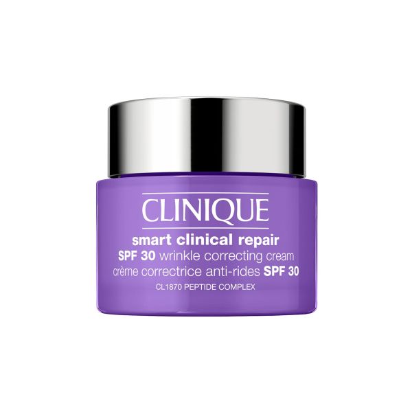 Clinique Smart Clinical Repair™ Hidratante Reparadora Antiarrugas SPF30 Fórmula dermoactiva que repara visiblemente las arrugas, protege la piel con la protección solar y ayuda a prevenir daños futuros. Fórmula SPF dérmica activa que reduce la apariencia de líneas de expresión y arrugas. Protege de los rayos UV y ayuda a evitar daños futuros causados por los radicales libres que pueden acelerar los signos del envejecimiento. Rellena la piel con hidratación instantánea y duradera, lo que ayuda a minimizar la aparición de líneas de expresión secas. Acabado invisible de rápida absorción sin manchas blancas. Nuestro hidratante dérmico ligero con protección solar repara visiblemente las líneas de expresión y las arrugas, además de proteger contra los futuros signos de la edad. Producto testado por dermatólogos. Adecuado para pieles sensibles. Todo tipo de pieles Repara visiblemente las líneas de expresión y las arrugas, protege e hidrata