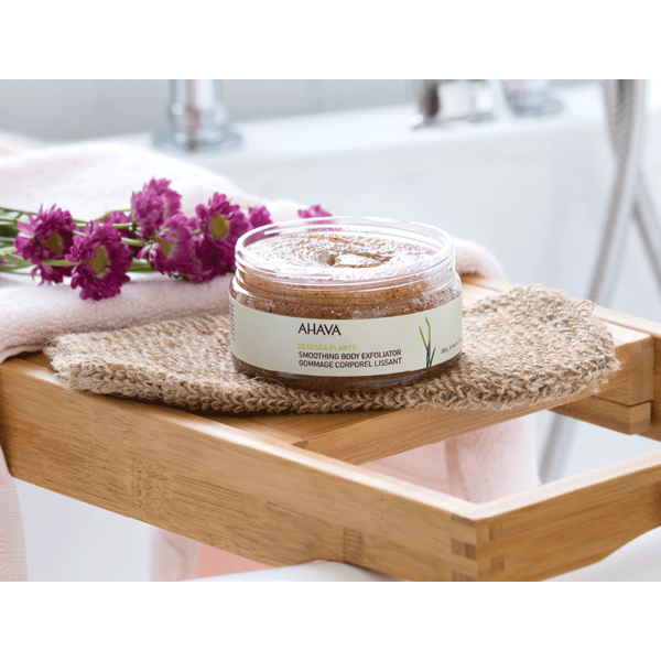 Una mezcla de ingredientes ultra-exfoliantes del Mar Muerto y cáscaras de argán marroquíes, el germen de la fecha, las semillas de uva y la caña de azúcar ayudan a suavizar la piel, mejorando la microcirculación y nutriéndola para una mayor claridad y luminosidad.