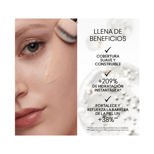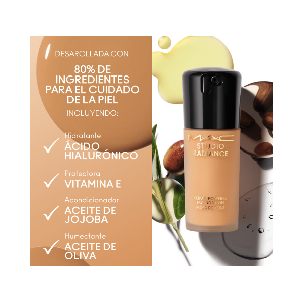 Sumérgete en el resplandor potenciado por el sérum. Conoce la base enriquecida con suero que fusiona nuestra experiencia en tonos de piel con la ciencia del cuidado de la piel. Esta innovación completamente nueva brinda +209% de hidratación para una piel más tersa, suave y radiante. Nuestra innovadora base también brinda una piel más hidratada y con un aspecto más saludable con el paso del tiempo, con luminosidad durante todo el día. Está alimentado por una base para el cuidado de la piel al 80% con 33 ingredientes para el cuidado de la piel, incluida una solución de ácido hialurónico al 10%, que retiene la humedad debajo de la superficie de la piel. También contiene un cóctel de poderosos superalimentos para el cuidado de la piel, que incluye aceites de oliva y jojoba para acondicionar la piel para que luzca más saludable, además de vitamina E para proteger la piel de la contaminación y la luz azul. La base de maquillaje Studio Radiance Serum-Powered™ presenta hidratación las 24 horas y una cobertura suavizante de construcción media que unifica instantáneamente la tez. Esta base liviana también difumina la apariencia de los poros, el enrojecimiento de la piel, las manchas oscuras y las líneas finas secas. Consigue un brillo personalizado con esta base de maquillaje Curated Radiance Blend, elaborada con partículas nacaradas plateadas y doradas específicamente diseñadas para complementar los matices únicos de una piel clara y rica. La botella de base de vidrio reciclable se elaboró teniendo en cuenta la sostenibilidad y presenta una tapa hecha con un 30% de PCR.Beneficios•+209 % de hidratación instantánea* para una piel más tersa, suave y radiante •Brillo duradero y de larga duración, 12 horas**•Hidratante, 24 horas***•Mejora el nivel de hidratación de la piel con el tiempo•Suaviza y unifica el tono de la piel•Fortalece y refuerza la barrera cutánea en un 38%****•Resistente al agua, al sudor y a la transferencia•91% dijo que la piel lucía notablemente más saludable*****•No obstruye los poros•Para todos los tipos de piel*Pruebas clínicas en 28 panelistas después de usar el producto una vez.**Pruebas clínicas en 20 panelistas después de usar el producto una vez.***Pruebas clínicas en 23 panelistas después de usar el producto una vez.****Pruebas clínicas en 21 panelistas después de usar el producto una vez.*****Pruebas de consumidores en 167 panelistas después de una semana de uso del producto.