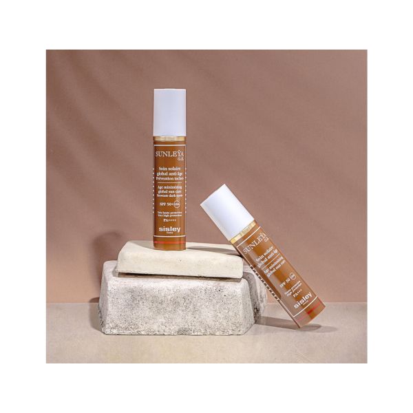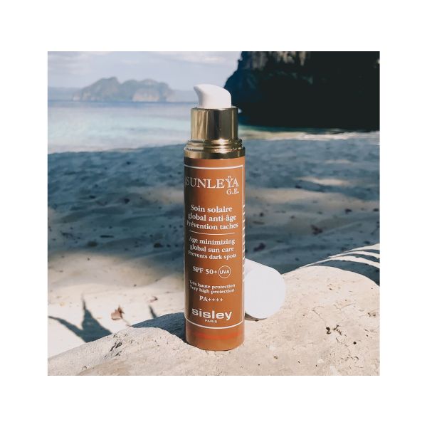 Sunleÿa G.E. Soin Solaire Global Anti-Âge SPF 50+ actúa como un auténtico escudo antiedad para la piel expuesta al sol, previniendo arrugas, manchas, deshidratación y pérdida de firmeza, dejando la piel con un luminoso y duradero bronceado. Posee una innovadora acción antiedad que ayuda a proteger la piel del envejecimiento asociado a la exposición al sol. Protección solar optimizada contra los rayos UVA y UVB a través de una combinación de filtros solares de vanguardia extremadamente avanzados. Una fórmula hidratante y enriquecedora (Glicerina de origen vegetal y Manteca de Karité). Textura fresca y sedosa. Se absorbe rápidamente y no deja un rastro blanco sobre la piel. No comedogénica. Resistente al agua.
