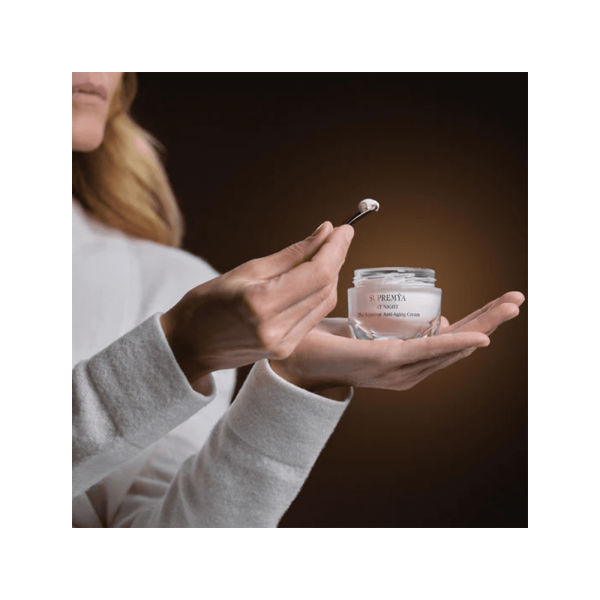 Aplicar Supremya Baume sobre la piel limpia y seca, por la noche, sobre el rostro, cuello y escote, mediante un ligero masaje hasta que el producto se ha absorbido completamente.