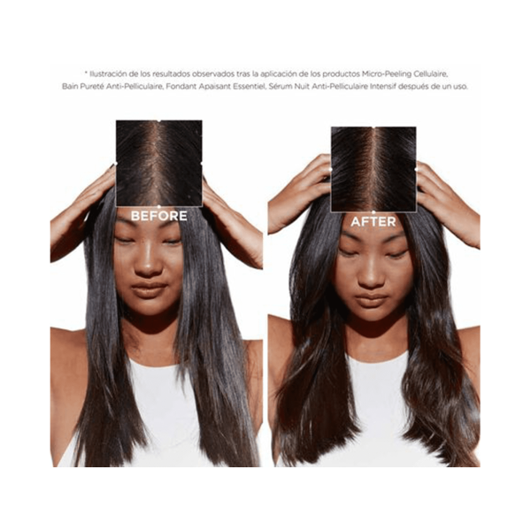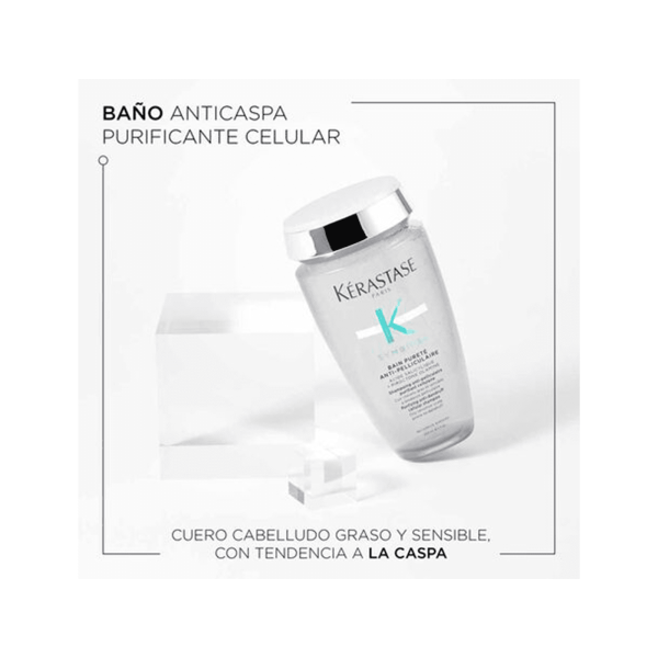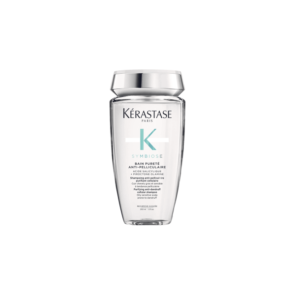 El champú Bain Pureté Anti-Pelliculaire de la gama Symbiose de Kérastase es un champú anticaspa purificador y calmante para cueros cabelludos grasos y sensibles propensos a la caspa. El champú exfolia la caspa y las escamas visibles del cuero cabelludo al instante. Limpia en profundidad los poros del cuero cabelludo obstruidos por las células muertas y la acumulación de sebo, aliviándolo y reduciendo el picor. Se respeta la fibra y se elimina la caspa.Este champú Bain Pureté Anti-Pelliculaire libera una fragancia única con notas de mandarina, naranja sanguina o jazmín. Su textura envuelve el cabello para una experiencia sensorial memorable. Rutina anticaspa para cueros cabelludos grasos: tras utilizar el Micro-Peeling Cellulaire, continúa con el champú Bain Pureté Anti-Pelliculaire, la Masque Revitalisant Essentiel y, por último, el Sérum Cellulaire Nuit Anti-Pelliculaire Intensif.Elige una rutina para obtener una eficacia anticaspa de hasta 7 semanas. La eficacia anticaspa de hasta 7 semanas está clínicamente probada tras el uso del producto*.Sin siliconas ni sulfatos**.Rutina para cuero cabelludo grasoSi tienes una caspa ligeramente amarillenta que no se desprende cuando te pasas la mano por el cabello, es posible que tengas el cuero cabelludo graso. Esta rutina regulará el nivel de sebo y eliminará la caspa y las escamas al instante.Rutina para cuero cabelludo secoSi tienes una caspa pequeña y blanca que tiende a caer sobre los hombros, es posible que tengas el cuero cabelludo seco. Esta rutina rehidratará su cuero cabelludo y eliminará la caspa y las escamas al instante.
