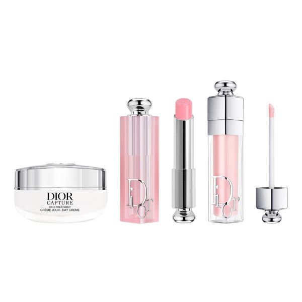 Para las fiestas, Dior presenta su ritual de brillo natural en una brillante bolsa de edición limitada adornada con las iniciales de CD y la estrella de la suerte de Monsieur Dior. Esta bolsa de maquillaje y cuidado de la piel reúne una selección de productos icónicos de la Maison Dior para un look natural y radiante: - Dior Addict Lip Glow, tono 001 Pink. En su tono rosa, este bálsamo labial revitalizante ilumina el tono natural de los labios con una luminosidad personalizada. Su fórmula con aceite de cereza y manteca de karité garantiza la hidratación de los labios durante 48 horas y un confort óptimo. - Dior Addict Lip Maximizer, tono 001 Pink, 6 ml. Este brillo de labios voluminizador con efecto volumen alisa los labios al instante y los hidrata durante 24 horas. Aporta un toque de color y un brillo radiante, en un delicado tono rosa. - Dior Capture Day Creme, 15 ml. La fórmula de la crema de día incorpora la tecnología de tratamiento OX-C con propiedades regeneradoras y reconstituyentes, extracto de lirio revitalizante y un dipéptido con propiedades densificantes. Proporciona un efecto esculpidor y redensificante instantáneo, para una piel visiblemente más suave y joven.